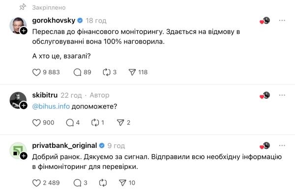 Gorokhovsky and PrivatBank reacted / Screenshot from the thread