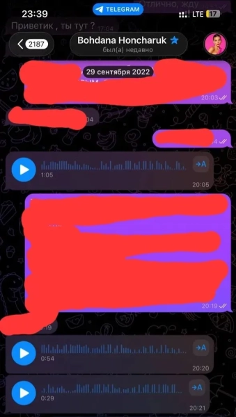 Maksym Skybinsky, the author of the YouTube channel “Skibi Tru”, published audio recordings on his page in a thread that look like voice messages from Bohdana Honcharuk. In them, the blogger supposedly talks about how she spends money from Russia and Belarus.
