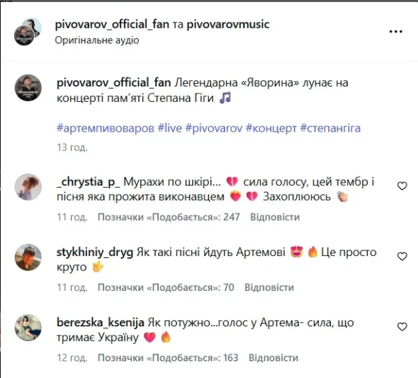 The reaction of the network to the performance of “Yavoryna” by Artem Pivovarov / Screenshot from Instagram