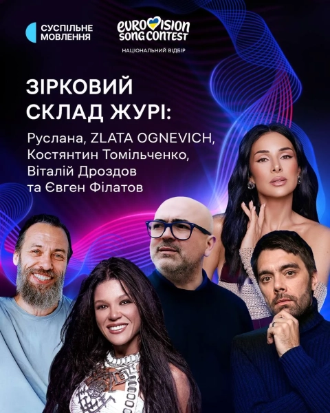 Timur and Lesya announced the jury members: Eurovision 2004 winner Ruslana , singer Zlata Ognevich , composer Yevgen Filatov , HitFM director Vitaly Drozdov , and director and choreographer Konstantin Tomilchenko . This year, they were introduced as experts who will evaluate songs and numbers according to clear criteria.