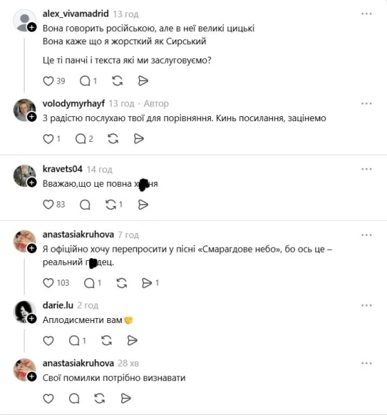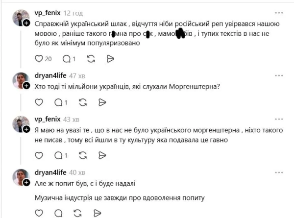 - “Real Ukrainian slag. It feels like Russian rap has invaded our language. Previously, such s**t and stupid lyrics were not, at least not popularized.”