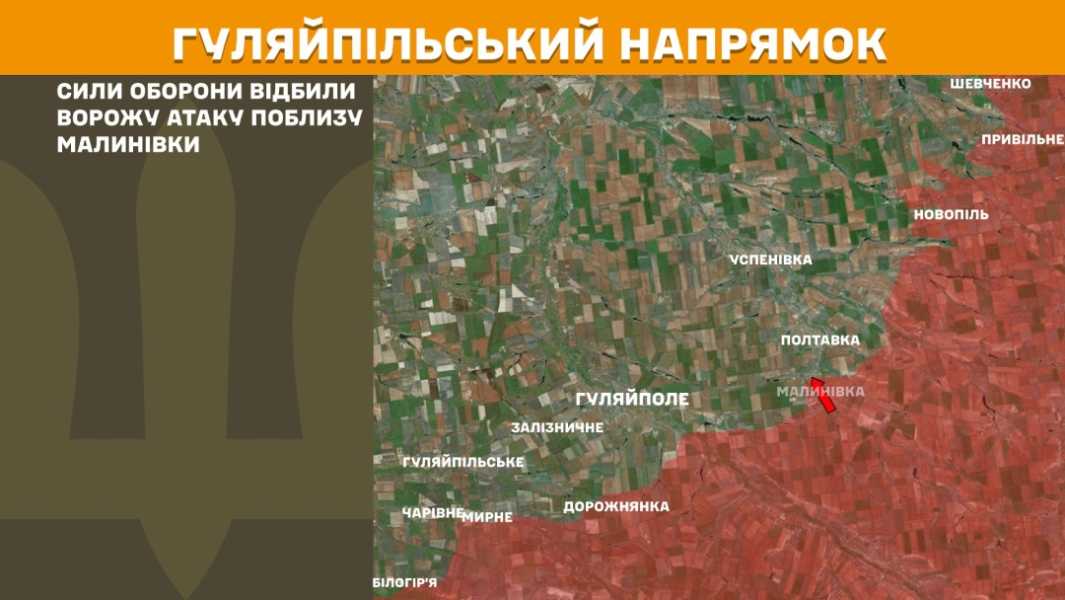 In the Huliaipe sector, the Defense Forces repelled an enemy attack near Malynivka.