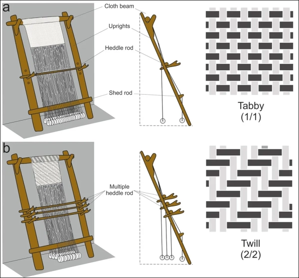 - The loom consisted of wooden beams, clay weights, and ropes, which allowed for the production of more refined fabrics than before.