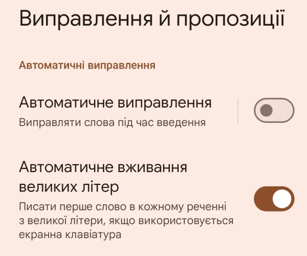 However, it is worth paying attention to the autocorrect system. Google often suggests too radical edits that only get in the way. Disabling the autocorrect and auto-capitalization options in the “Corrections and suggestions” section will allow you to regain full control over the content of your messages.