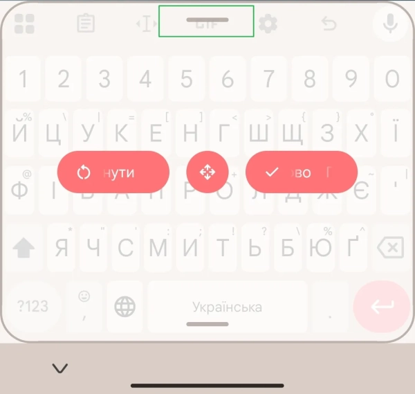 To do this, click on the button with four squares and select “Resize”. Now, at the top of the block, hold your finger on the horizontal gray line and drag up or down. This adds space between elements and reduces the number of false clicks. You can also adjust the keyboard position or change the font size for better visibility.