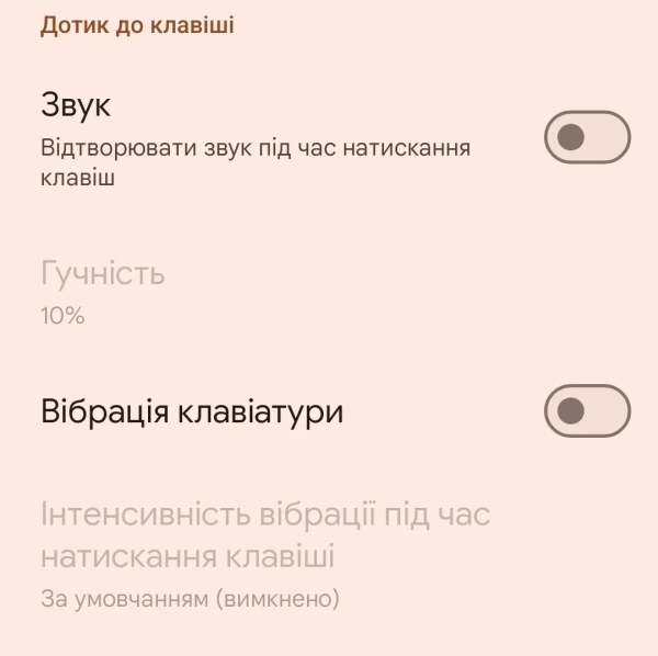 Tactile sensations play an equally important role. If the vibration with each press seems too harsh or simply annoying, you can adjust its intensity or turn it off completely in the keystroke settings. To do this, go to the settings, select “Options”, scroll down and find “Keyboard vibration” and “Vibration intensity when pressing a key”. You can also turn off the keystroke sound a little higher if it annoys you.