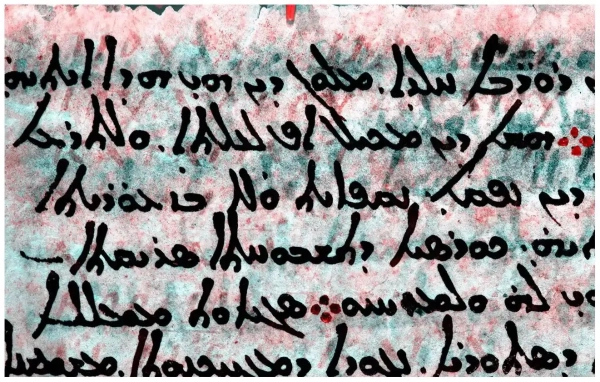 The erased Greek words (in red) are visible under the later Syriac text / Photo by Journal for the History of Astronomy