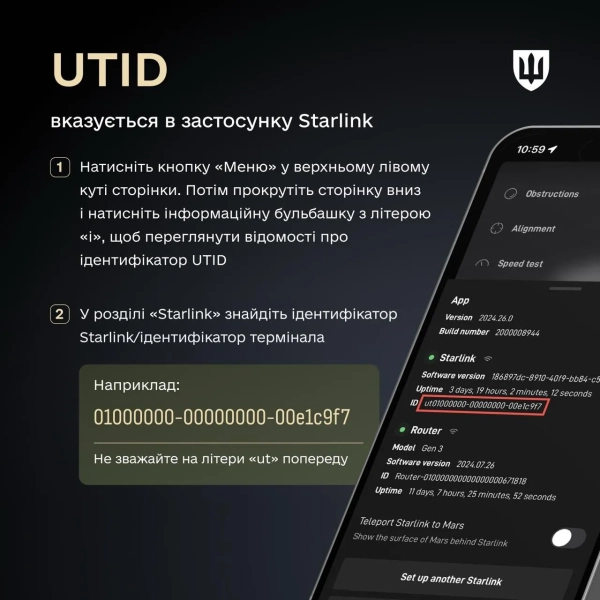 - To verify Starlink in Ukraine, users must provide the KIT number or UTID found on the box or in the mobile app.