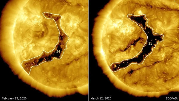 - On March 13, 2026, the Earth will be hit by a minor G1-level magnetic storm caused by a coronal hole on the Sun.