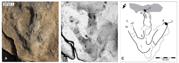 Dinosaur footprint Megalosauropus broomensis Colbert or Merriless / Photo Damian Kelly/University of Queensland/EPA