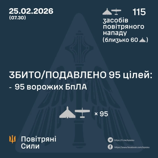 - On the night of February 25, Russia attacked Ukraine with 115 attack drones, most of which were shot down.