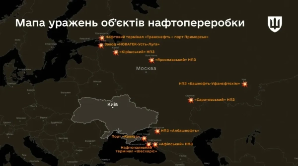 Map of damage to Russian refineries / Image from the Ministry of Defense